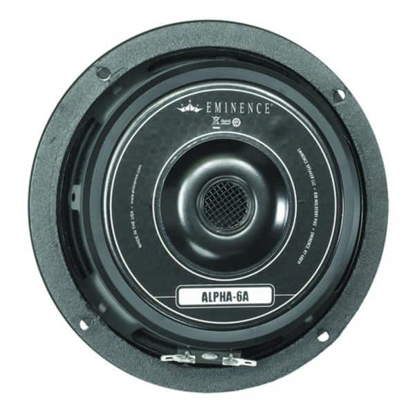 Le haut-parleur Eminence Alpha-6A fait partie de la série American Standard identifiable à son châssis en acier. D’un diamètre de 6″ soit 16,50cm il supporte jusqu’à 100 Watts RMS sous 8 ohms et s’intègre parfaitement dans les enceintes de sonorisation pour les médiums voire même les graves pour des satellites de type bass reflex.