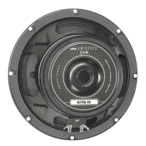 Le haut-parleur Eminence Alpha-8A fait partie de la série American Standard identifiable à son châssis en acier. D’un diamètre de 8″ soit 20,32cm il supporte jusqu’à 100 Watts RMS sous 8 ohms et s’intègre parfaitement dans les enceintes de sonorisation pour les médiums voire même les graves pour des satellites de type bass reflex.