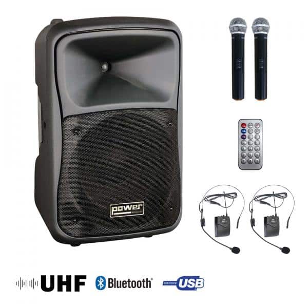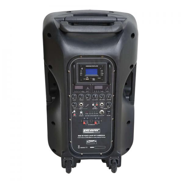 Le Be9700 UHF Pt Media est une Sono portable MP3+USB+2 micros main UHF+2 serres-tête.