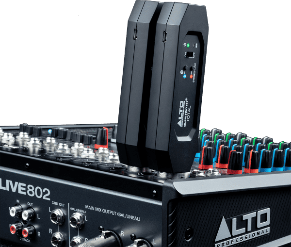 Il dispose d’une batterie rechargeable intégrée offrant plus de 6 heures d’autonomie, et se recharge via un port micro USB. Il ne vous reste plus qu’à presser le bouton d’appairage pour vous connecter à votre source audio compatible Bluetooth, et ainsi transformer votre enceinte active en enceinte Bluetooth, ou bien envoyer un signal audio Bluetooth sur votre console de mixage, sans pour autant altérer la qualité du son. L’usage d’un second récepteur Bluetooth Total 2 vous permettra d’appairer deux enceintes actives et de profiter ainsi d’un signal audio stéréo.