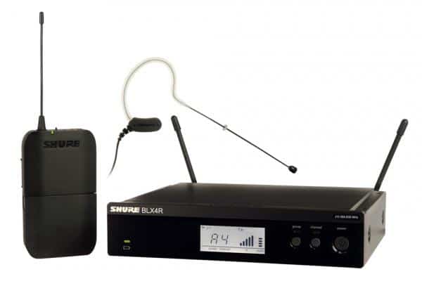 Composé d’un récepteur BLX4RE avec kit de montage en rack simple / double et report d’antennes en façade, d’un émetteur ceinture BLX1 et d’un micro tour d’oreille statique omnidirectionnel noir MX153B/O-TQG.