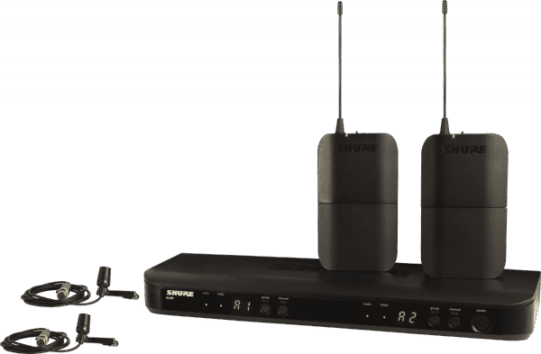 Composé d’un récepteur doubleBLX88E, de deux émetteurs ceinture BLX1 et de deux micros cravate statiques cardioïdes CVL?B/C?TQG.