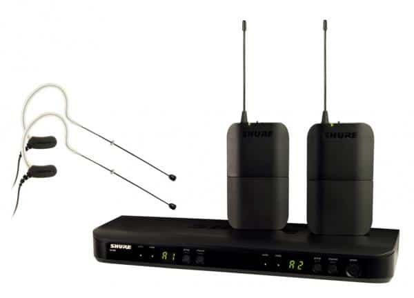 Composé d’un récepteur double BLX88E, de deux émetteurs ceinture BLX1 et de deux micros tour d’oreille statiques omnidirectionnels noirs MX153B/O-TQG.