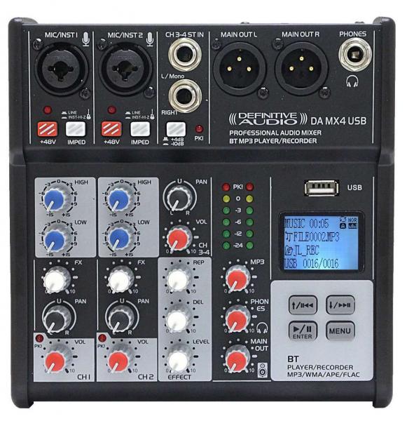 La DaMX4 usb est une table de mixage 3 canaux de Definitive Audio.
