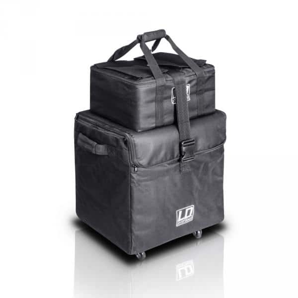 Le LD Systems Dave 8 Set 1 est un lot de housses de transport pour les enceintes Dave 8 XS et Dave 8 Roadie. La housse du caisson de basse est équipée de roulettes facilitant le transport, et les deux housses sont maintenues ensemble par des bandes de velcro renforcées. Fabriquées en nylon resistant avec un rembourrage, elles sont dotées de compartiments pour ranger les câbles et autres accessoires.