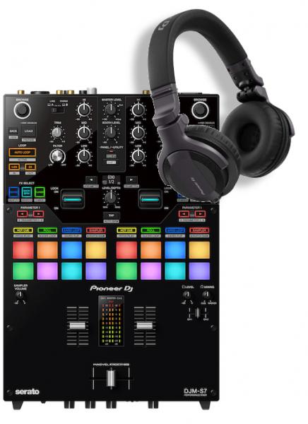 La DJM -S7 est une table de mixage Dj de chez Pioneer DJ avec son casque Pioneer HDJ-CUE1.