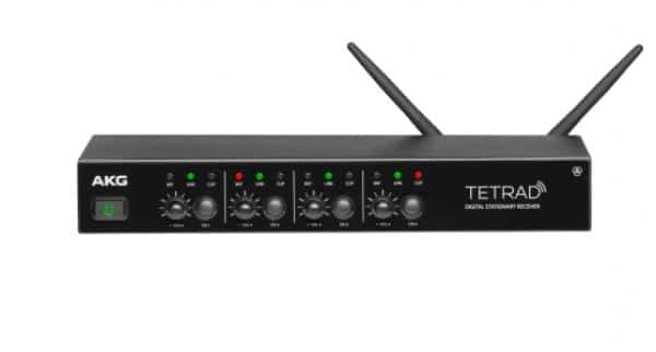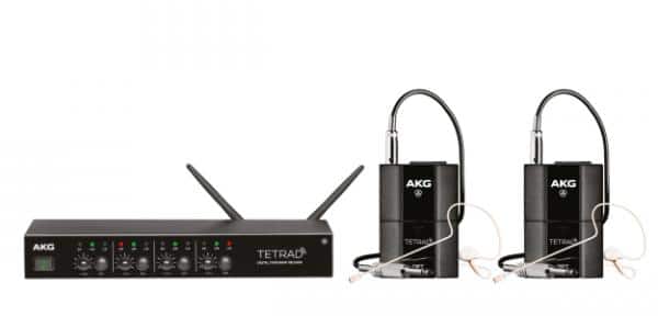 Le DMSTetrad Performer Set d’AKG est un système HF numérique 2,4Ghz, 4 canaux, 2 transmetteurs
