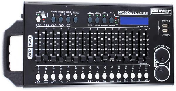Le Power Lighting DMX SHOW 512 CXT USB est une Console DMX 512 Canaux. Le DMX SHOW 512 CXT USB est un contrôleur DMX compact et portatif idéal pour la gestion de jeux de lumière et autres éclairages décoratifs. D’une capacité totale de 512 canaux total et intégrant 16 faders linéaires il permet de gérer jusqu’à 28 appareils de 18 canaux chacun. Excellentes possibilités de programmations facilitées par de nombreux mouvements déjà intégrés. Son stockage des données et programmes sur USB apporte une superbe innovation et simplifie l’approche et le travail du DMX. Il est également équipé d’un écran digital très pratique. Idéal pour la gestion d’effets lumière, d’éclairage décoratif, d’enregistrements de programmes séquences et/ou la gestion de zones spécifiques. Transformateur d’alimentation inclus.