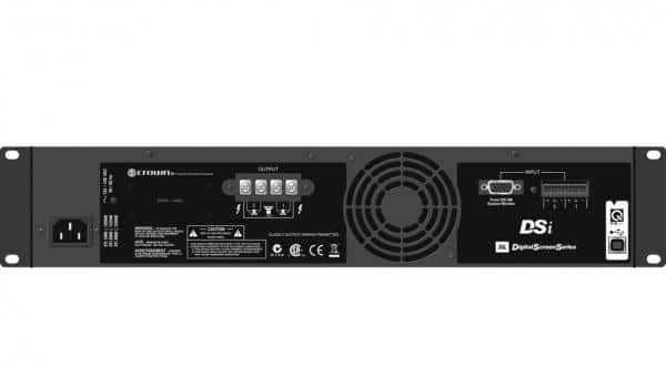 L’amplificateur Crown DSI 2000 est spécialement adaptée aux installations Cinéma. Il fonctionne sous les charges de 2 à 8 ohms en mode stéréo et de 4 à 16 ohms en mode bridge. Il est de taille 2U et pèse 8,6 kg. Il utilise une amplification de classe AB+B. Les gains sont fixés à 26 dB et le facteur d’amortissement est supérieur à 500. Le DSP interne permet le paramétrage complet de l’amplificateur. Il dispose de 15 programmes d’usine paramétrés pour les enceintes JBL Cinéma et de 5 programmes utilisateur.