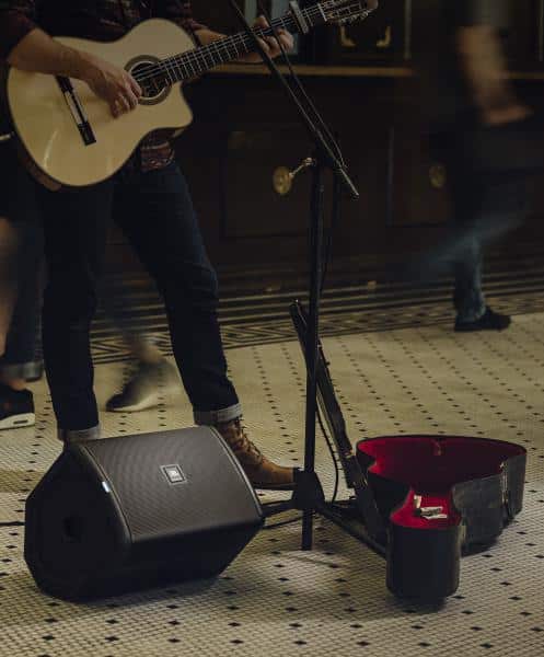 Enceinte amplifiée portable sur batterie tout-en-un.