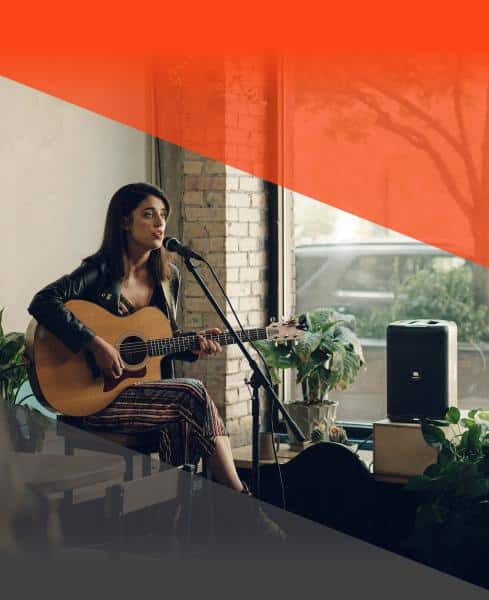 • Connectez des microphones, des instruments et des appareils de lecture avec deux prises combo XLR/jack, une entrée guitare Hi-Z jack 6,35 mm et une entrée auxiliaire sur mini jack 3.5mm
