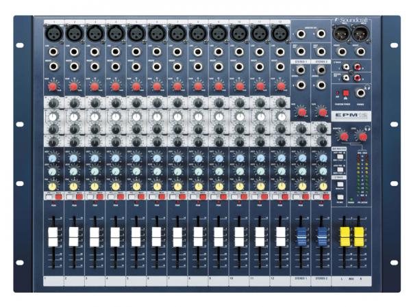 Disponible en trois versions 6, 8 et 12 voies, la série EPM apporte de nouvelles fonctionnalités dans la catégorie des consoles multi-format tout en maintenant un rapport qualité/prix élevé. L’utilisation de composants de surface de faible tolérance augmente la précision des circuits de gain et de correction. Le préampli micro GB30 identique à celui utilisé dans la LX7II et la série GB permet d’obtenir une réserve zdynamique de +22 dB et dispose d’une véritable alimentation fantôme professionnelle 48V. Une LED d’écrêtage permet de visualiser progressivement si le signal approche du point de saturation, mesuré sur les différents étages de chaque voie.