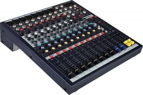 Disponible en trois versions 6, 8 et 12 voies, la série EPM apporte de nouvelles fonctionnalités dans la catégorie des consoles multi-format tout en maintenant un rapport qualité/prix élevé. L’utilisation de composants de surface de faible tolérance augmente la précision des circuits de gain et de correction. Le préampli micro GB30 identique à celui utilisé dans la LX7II et la série GB permet d’obtenir une réserve zdynamique de +22 dB et dispose d’une véritable alimentation fantôme professionnelle 48V. Une LED d’écrêtage permet de visualiser progressivement si le signal approche du point de saturation, mesuré sur les différents étages de chaque voie.