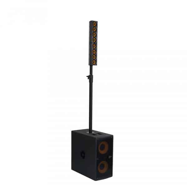 Il délivre une puissance de 1400 Watts, 126 db Max SPL, réponse en fréquence 50hz – 20khz.