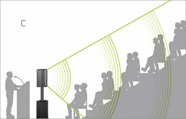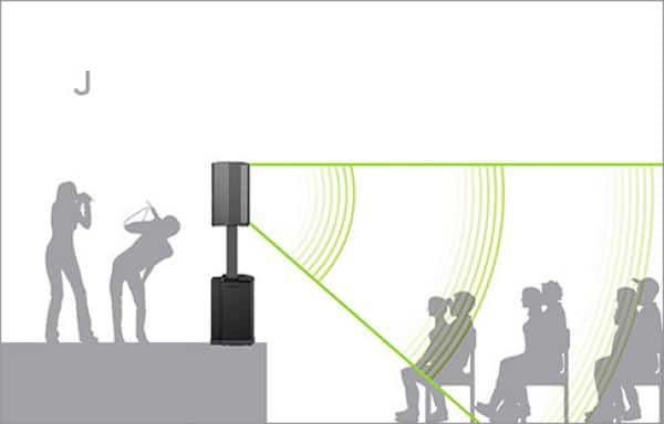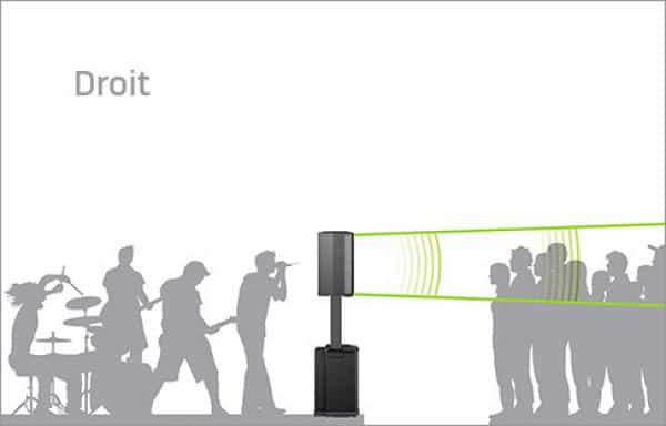 L’enceinte amplifiée de 1000W Bose F1 Model 812 Flex Array est équipée d’un haut-parleur de 12″(30,48cm) et 8 haut-parleurs de 2.25″ (5,72cm) alignés verticalement et articulés pour proposer 4 profils de couverture: Droit (resserré face à l’enceinte), J (arrondi vers le bas), J inversé (arrondi vers le haut) et C (arrondi en haut et en bas). Chaque position agit automatiquement sur l’égaliseur pour assurer un équilibre sonore.
