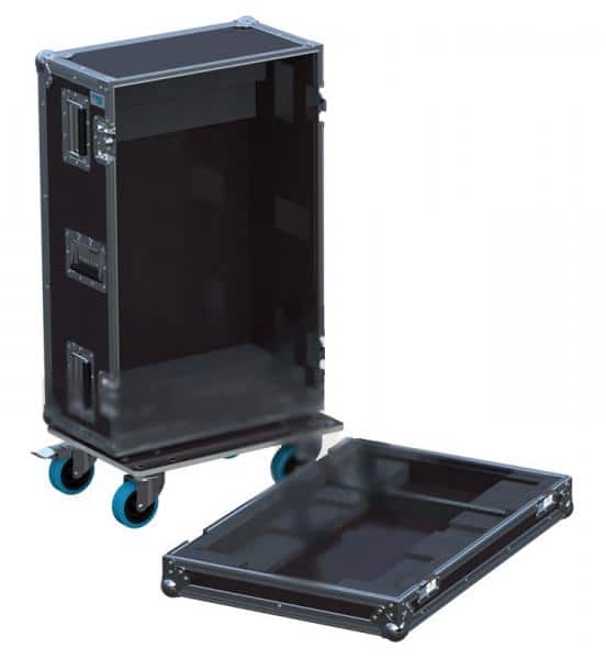 Flight case Rythmes & Sons pour table de mixage YAMAHA DM1000 avec bandeau vu-mètre et avec ou sans flancs bois.