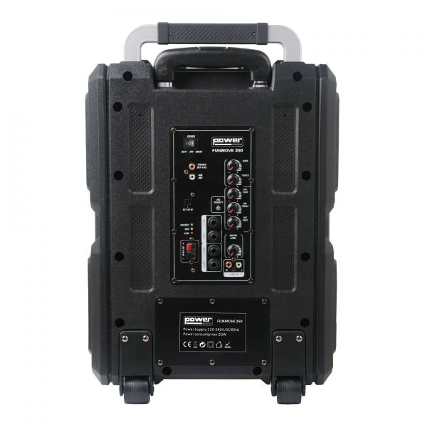 La gamme FUNMOVE s’agrandit avec l’introduction de la FUNMOVE 250. C’est une sono portable autonome sur batterie équipée de deux micros sans fil UHF, d’un lecteur multimédia et de nombreuses connexions permettant d’y brancher tout type d’appareils comme : guitares, basses, claviers, accordéons, lecteurs CD. Idéale pour une utilisation mobile, elle sera parfaite à la plage, en pique-nique, lors d’une soirée entre amis ou en classe scolaire. Son trolley offre une mobilité plus facile et pratique.