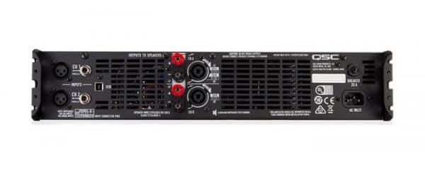 – Sorties: les connecteurs professionnels à bornier et NL4 (compatibles avec les NL2) permettent de brancher les enceintes en mono et bi-amplification.