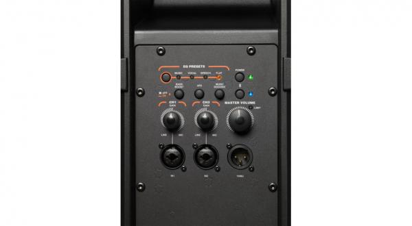 Le streaming audio Bluetooth 5 vous permet de lire des playbacks, des bandes sonores de vidéo ou de la musique enregistrée, avec la possibilité de relier deux enceintes pour créer une véritable image stéréo. Deux entrés combo XLR/jack et une sortie cascade XLR pour la connexion d’enceintes additionnelles complètent les options d’entrée/sortie.