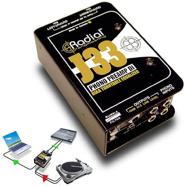 Le Radial J33 est un préampli / boitier de direct de haute qualité permettant la connexion d’ une platine 33 tours à une consôle d’ enregistrement ou tout autre système son. Le J33 est idéal pour une utilisation studio, facilitant les tâches de sampling et d’ archivage. Il sera également une interface performante d’ enregistrment scratch et remix pour DJs.