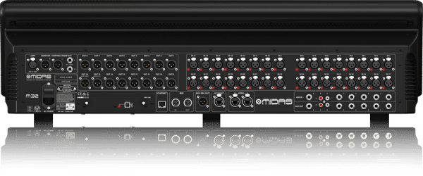 La M32 bénéficie de préamplis MIDAS, elle dispose du traitement du signal et des effets développés pour la Behringer X32. Elle est livrée avec de nombreuses possibilités de connexions.