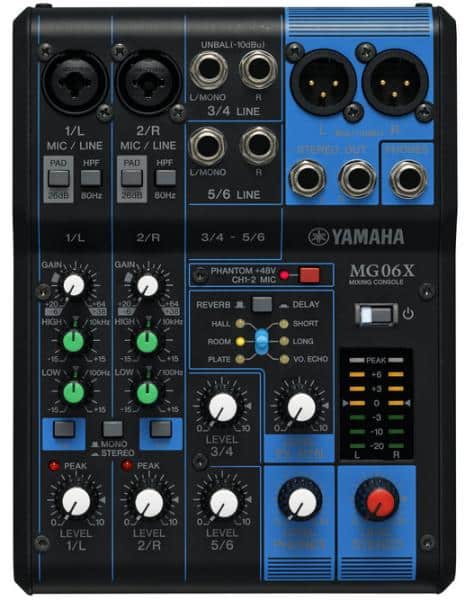 La Yamaha MG06X est une console de mixage 6 voies, qui intègre des préamplis D-PRE de qualité studio, travaillant en Classe A et à composants discrets, ainsi qu’un étage d’effets avec 6 paramètres.