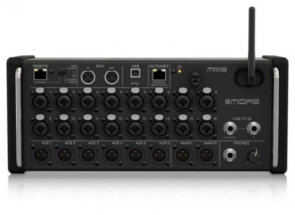 La Midas MR18 est une console de mixage numérique pouvant être mis en rack, cette console se présente sous la forme d’une baie de connexions, l’ensemble des contrôles se faisant à distance, depuis une tablette iPad ou Android ou un ordinateur Mac/PC/Linux.