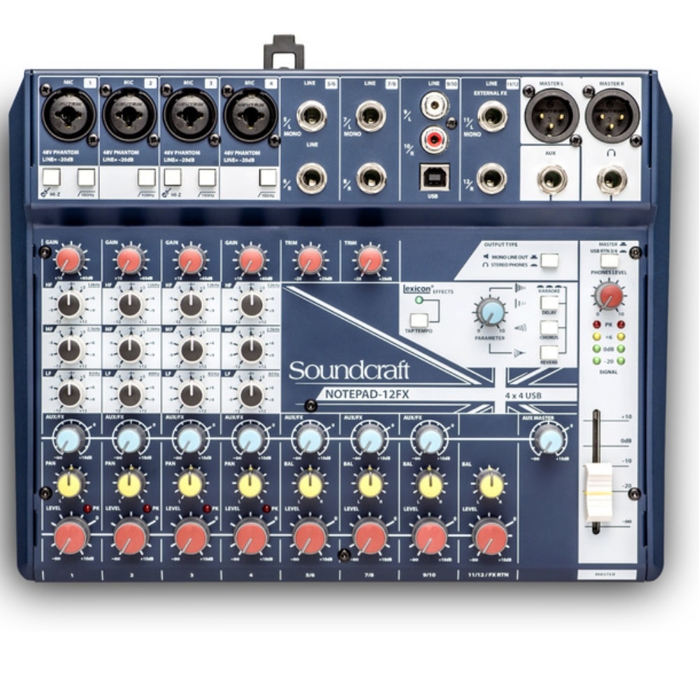 La NotePad-12FX de Soundcraft est une console avec USB et effets Lexicon, 10 entrées, 2 sorties.