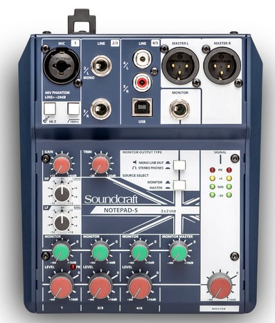La Notepad 5 de Soundcraft est une console USB compacte, 3 entrées, 2 sorties, offrant une qualité audio exceptionnelle!