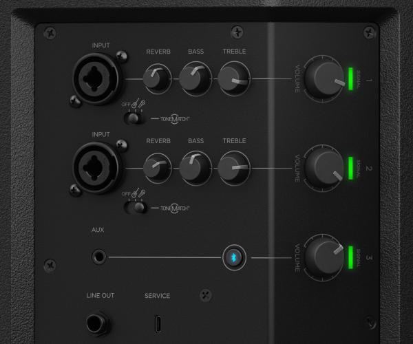 Il est équipé d’une table de mixage 3 canaux qui intègre réverbération et streaming Bluetooth.