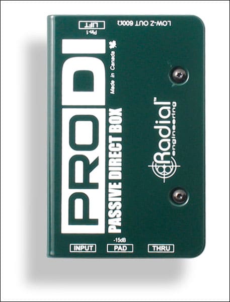 La boite de direct passive Radial ProDI est adaptée aux guitares basses, aux guitares acoustiques actives et aux claviers à la fois en live et en studio. Très simple d’utilisation, elle est équipée d’un transformateur avec une impédance très élevée à 140k ohms qui permet à la DI de traiter tous les signaux sans distorsion grâce à une protection interne MuMETAL.
