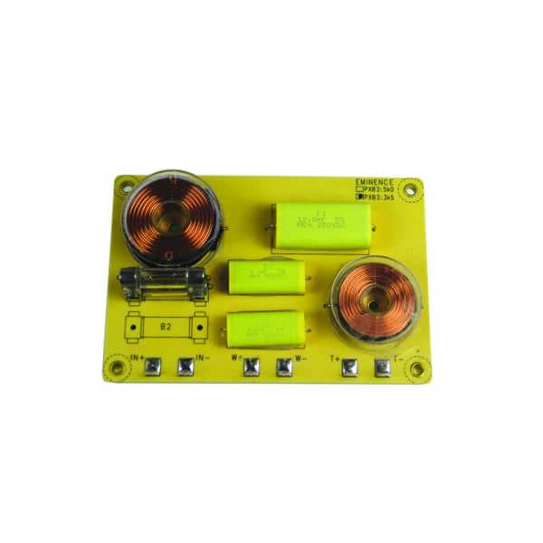 L’Eminence PXB2-3k5 est un filtre passif à 2 voies pour une puissance maximum de 400 Watts RMS sous 8 ohms. La fréquence de coupure est à 3,5kHz