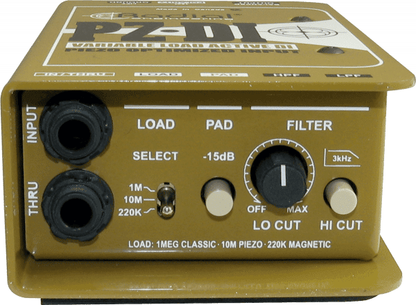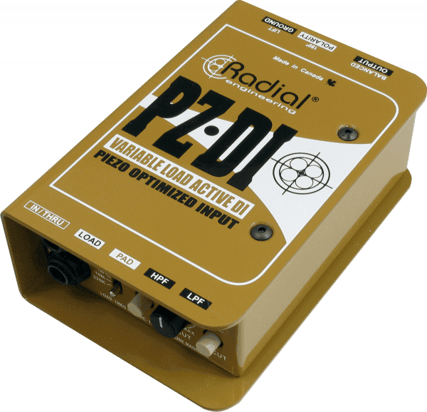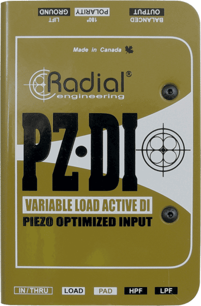 La Radial PZ-DI est une boîte de direct unique qui est conçue spécifiquement pour les instruments acoustiques et orchestraux.Contrairement à la plupart des boîtes de direct, la PZ-DI vous permet de faire correspondre l’impédance d’entrée de la source afin d’optimiser la réponse en fréquence, la dynamique et la sensation pour un résultat plus musical.L’interrupteur de réglage d’impédance 3 positions est le point central de la PZ-DI :La position 1 meg ohm fournit l’impédance classique disponible sur la plupart des boîtes de direct actives.Le réglage à 220k ohms génère un réchauffement du signal en vue de convenir à un capteur magnétique, un peu comme si l’instrument était connecté à un ampli à lampes.La position 10 meg ohms est utilisée pour compenser le son criard qui émane généralement des instruments équipés de piézo.De plus, un filtre passe-haut variable vous permet de ‘sculpter’ l’instrument en atténuant délicatement les basses fréquences, ce qui élimine toute résonance indésirable. Vous pouvez, par exemple, conserver le bas du spectre sur un violoncelle, mais faire agir ce filtre pour mieux convenir à un violon. Sur les instruments actifs, tels que des guitares acoustiques dotées d’un préampliembarqué, vous pouvez engager ce filtre pour obtenir un son plus doux et naturel.Afin d’optimiser la gestion des signaux et réduire la distorsion, la PZ-DI intègre une alimentation en courant continu innovante qui convertit l’alimentation fantôme en vue d’offrir davantage de ‘headroom’. Ce qui donne une plage dynamique confortable pour les instruments acoustiques. Pour les sources à fort niveau, comme les basses actives ou les claviers numériques, il suffit d’activer le pad -15dB. La Radial PZ-DI dispose également d’un inverseur de polarité à 180° et d’un ground lift.