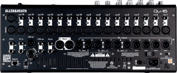 L’écran tactile à haute résolution vous permet d’accéder à de nombreux réglages par canal, comme les possibilités de routage, les paramètres d’effets, et à la gestion du système. La Qu-16 de Allen & Heath est équipée de l’interface Qu-Drive USB, grâce à laquelle vous pouvez transporter un signal stéréo (même sur plusieurs canaux avec un Mac) ou enregistrer directement deux pistes en format WAV sur un support USB.