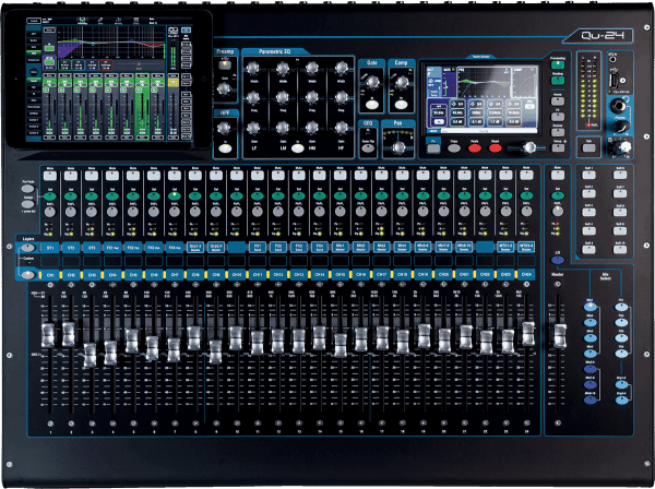 La différence la plus importante avec la Qu-16 est évidemment le nombre de canaux. De plus, le Qu-24 est muni de dix SoftKeys (touches) programmables, d’une interface USB intégrée, de faders motorisés, d’une connexion dSnake et d’effets de la série iLive.