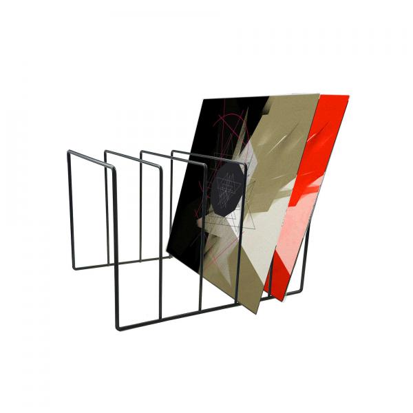 Support métallique pour contenir des vinyles et les ranger facilement. Cet accessoire peut contenir environ 30 disques avec 5 compartiments indépendants.