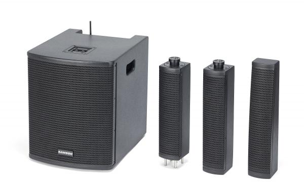 Ce système actif de 700 watts comprend un subwoofer de 12 pouces avec un mélangeur à 3 canaux et huit haut-parleurs de 3,5 pouces disposés en une colonne verticale qui offre une couverture horizontale de 120° à 200°.