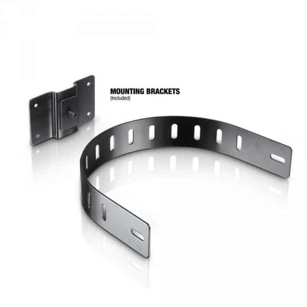 L’arceau de montage inclus et les points d’accroche M6 offrent de nombreuses possibilités de montage, et un support articulé sur rotule universel est disponible en option. Le branchement à l’amplificateur s’effectue par bornier à ressort.