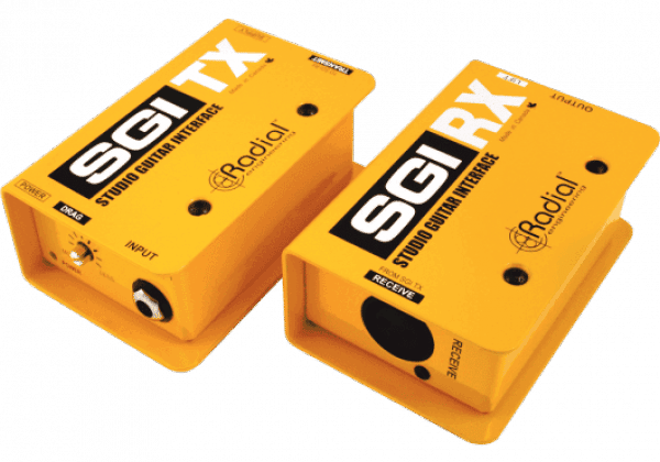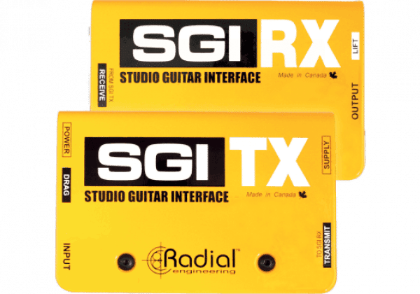 La guitare est branchée dans le SGI-TX qui s’occupe de la conversion d’impédance et de niveau, ainsi que de la symétrisation du signal. La sortie est similaire à celle d’une DI, ce qui permet de la connecter aux systèmes multipaires de scène ou de studio. En fin de parcours, la SGI-RX reconvertit le signal en signal guitare haute impédance pour alimenter ampli ou pedalboard.