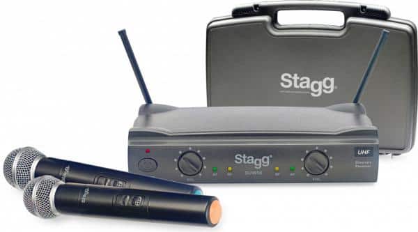 Le Stagg SUW 50 MM FH EU est un double système UHF, incluant 2 micros main et un double récepteur.