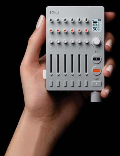 Avec le TX-6, Teenage Engineering présente un mixeur stéréo professionnel à 6 canaux avec une interface audio multifonctions dans un design portable ultra-compact. Le boîtier en aluminium, de la taille de la paume de la main, est bourré de fonctionnalités intelligentes comme la synchronisation du tempo, le mode crossfade, un synthétiseur avec séquenceur, 2 effets stéréo et un accordeur. La batterie rechargeable par USB permet une utilisation mobile jusqu’à 7 heures. Grâce au Bluetooth LE, le TX-6 peut être utilisé comme contrôleur MIDI et pour télécommander un deuxième TX-6.