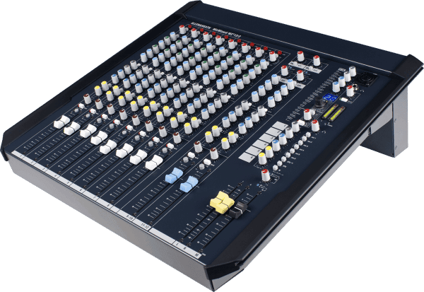 Elle est équipée d’une EQ, de faders 100mm, de 6 départs auxiliaires et d’un VU-mètre 12 segments.