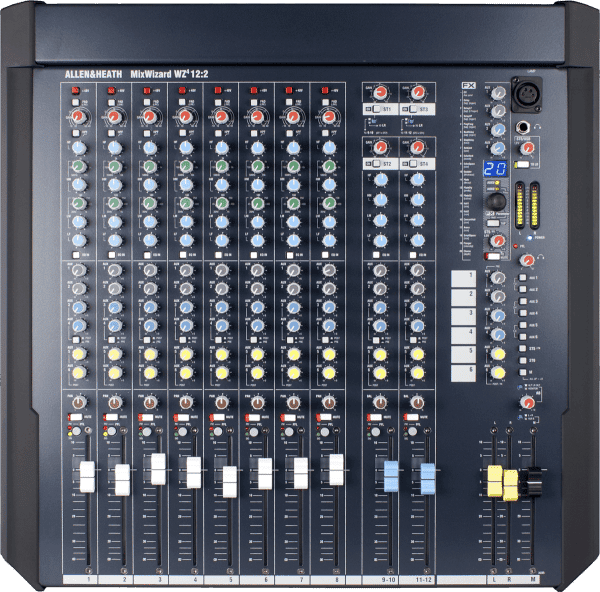 La console WZ412:2 d’Allen & Heath est une table de mixage analogique, proposant 8 entrées micros et 2 entrées stéréo.