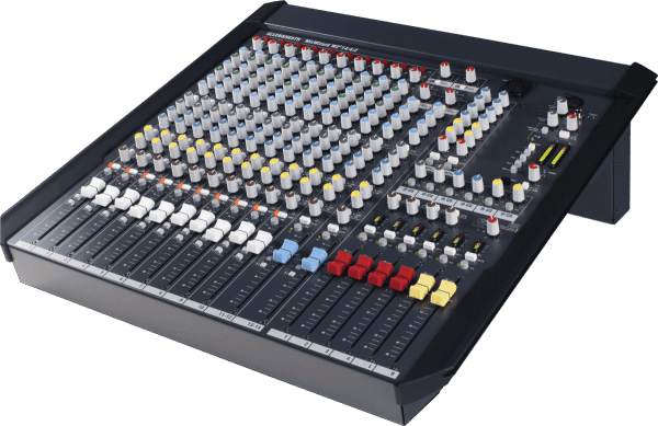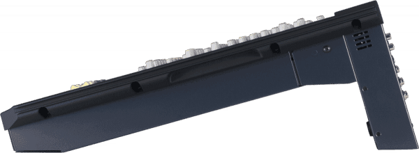 Elle est équipée d’une EQ, de faders 100mm, de 6 départs auxiliaires et d’un VU-mètre 12 segments.