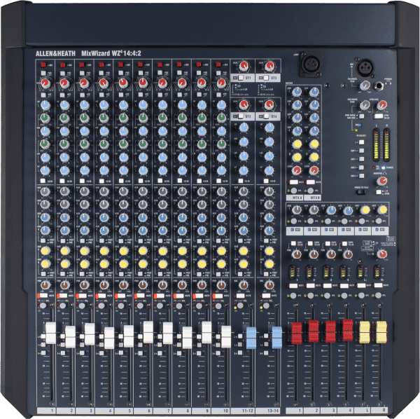 La console WZ4-14-4-2 d’Allen & Heath est une table de mixage analogique, proposant 10 entrées micros et 2 entrées stéréo.